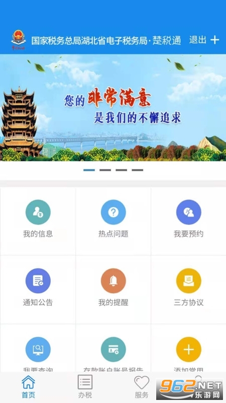 楚税通,一般又称湖北税务app,楚税通湖北税务,湖北楚税通,湖北税务楚税通,楚税通app医保缴费。湖北省税务局网上税务局)是为广大纳税人和缴费人服务的又一载体,是从PC端到移动端的全方位服务延伸,电子税务局(移动版)包括“我的预申请”、“申报缴税”、“我要查询”、“我有意见”、“为您提醒”、“税费政策”、“设置”等功能模块
