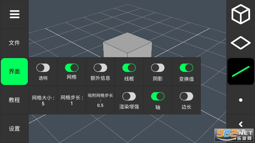 相当好用的一款手机建模软件,让大家可以随时随地在自己的手机上面完成立体几何图形的创建,修改和调节,里面有着丰富的工具,能够一站式解决大家的问题!