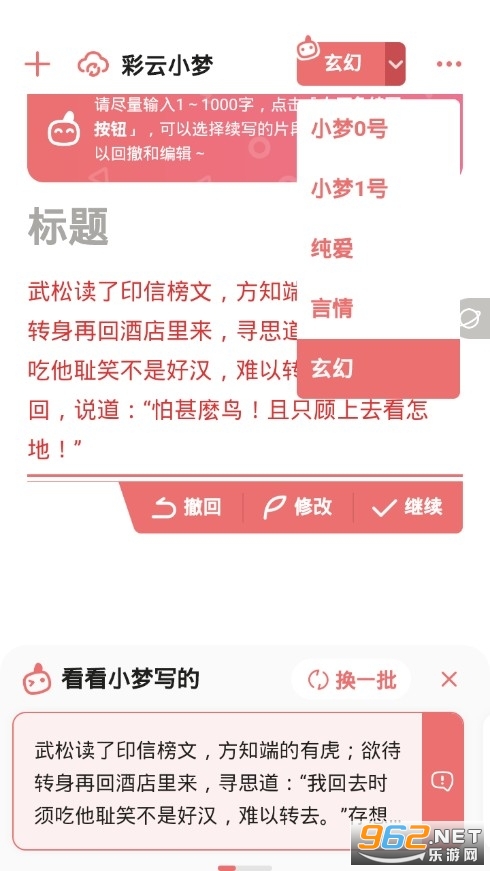 3,通过专业的续写模式用户可以获得更多的灵感效果以及独特的数据表达,在不同的模式以及内容传递中能够更加轻松的更新更多的创作情节,满足自己的所有需求。
