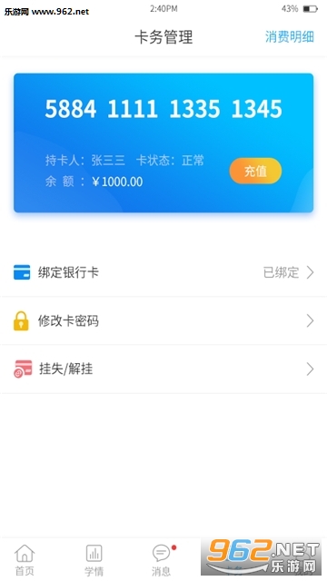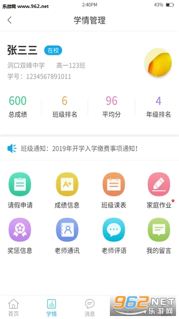 2、家长可以随时随地的了解学生在校考勤、学习情况、缴费消费情况