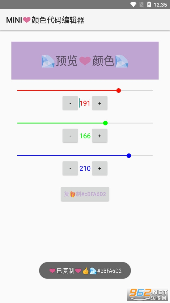 《迷你世界mini颜色代码编辑器》是为迷你世界玩家打造的一款可以自由调节颜色的软件,操作非常的简单,进入mini颜色代码编辑器之后可以看到三个不同的颜色进度条,可以自由的调节三种颜色来获得自己想要的颜色,可以点击下面的复制直接复制进行使用。