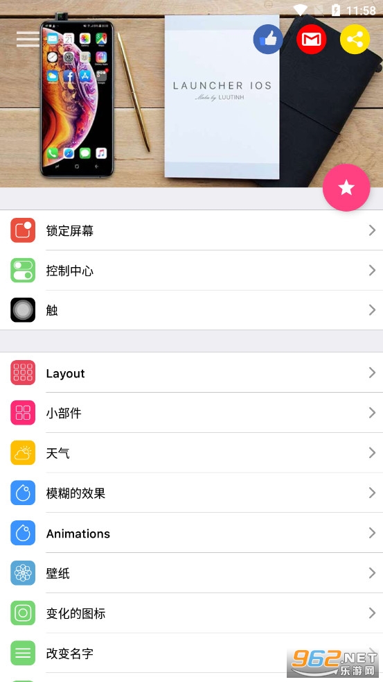 1、包括了各种桌面小工具,将自己的安卓手机变为iOS系统的仿生桌面