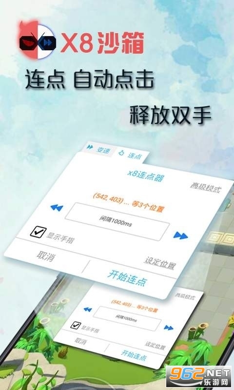 其他功能:X8沙箱为游戏玩家量身定制的一些工具,例如连点器,变速工具等,也可以指定沙箱的分辨率,解决全面屏下各种游戏辅助软件使用不了的问题。