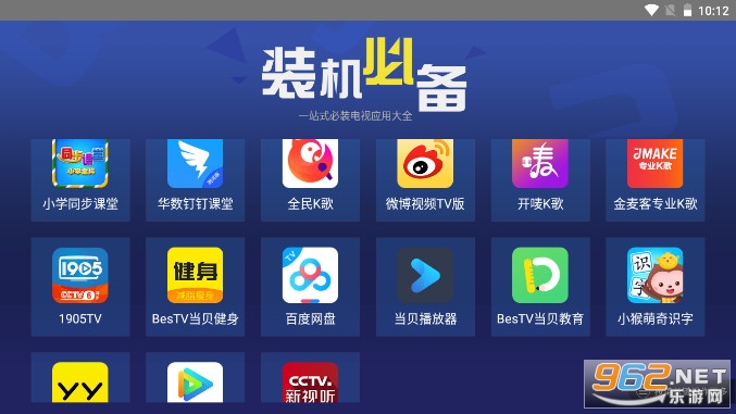 装机必备tv版为大家提供海量的电视应用,收录了最新的电视应用软件,让大家在电视上找应用更加方便。有需要的朋友快来962乐游网下载吧!