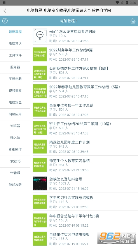 3、学习资源比较多,有电脑知识、办公软件、设计软件、健康生活和文学范文等等