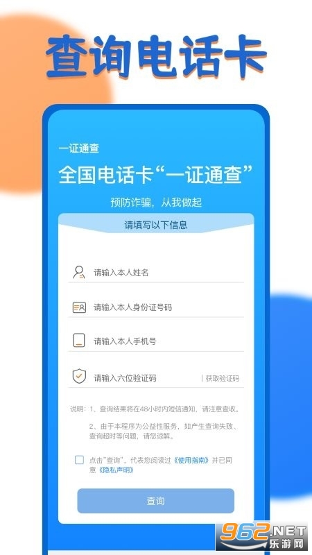 2、全国所有实名手机卡均可通过本次查询APP查询
