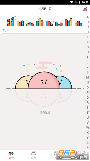 来往礼薄是一款方便实用的记账簿软件,来往礼薄软件任务平台可以用来在宴席上记录人情,生活中一些零细开支都可以用得上它,界面风格简单,拥有很多不同的数据统计图显示,给到大家最详细的记账服务帮助。