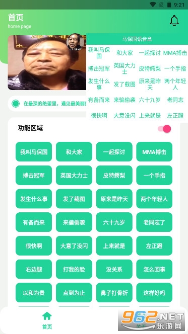 《保国音盒app》为大家带来的最经典的马保国大师语录,以所谓著名“传武大师”马保国为原型所创作,加入了许多二创恶搞元素在其中,为大家带来一丝丝轻松幽默体验。