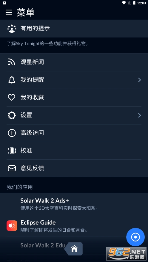 &9658; 开启夜间模式,让您在夜间观察星空更加舒适。
