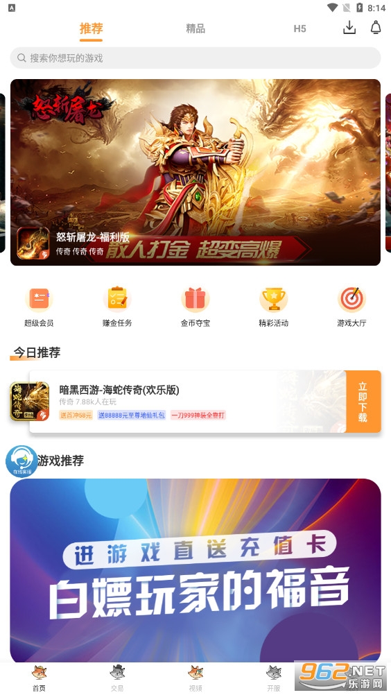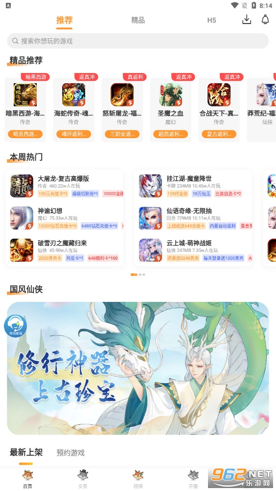 一款非常不错的福利游戏平台,在这里有着各种各样不同的高质量手游等你体验,还包括了各种h5游戏。在这里你可以轻松畅玩,还有着超多的游戏礼包,还能够进行账号交易,推荐给有需要的用户。