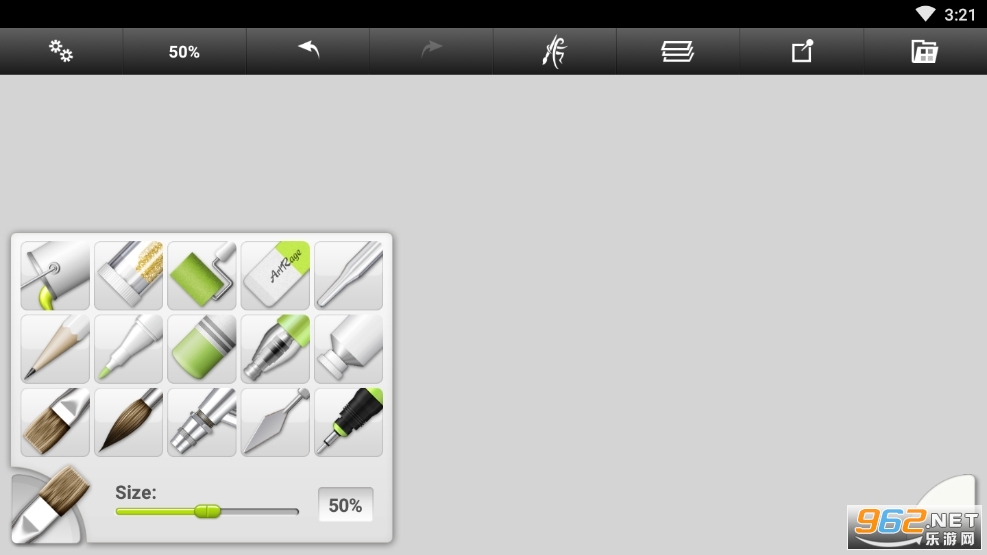 选择一个工具然后离开,ArtRage旨在专注于艺术,而不是导航大量的工具设置。