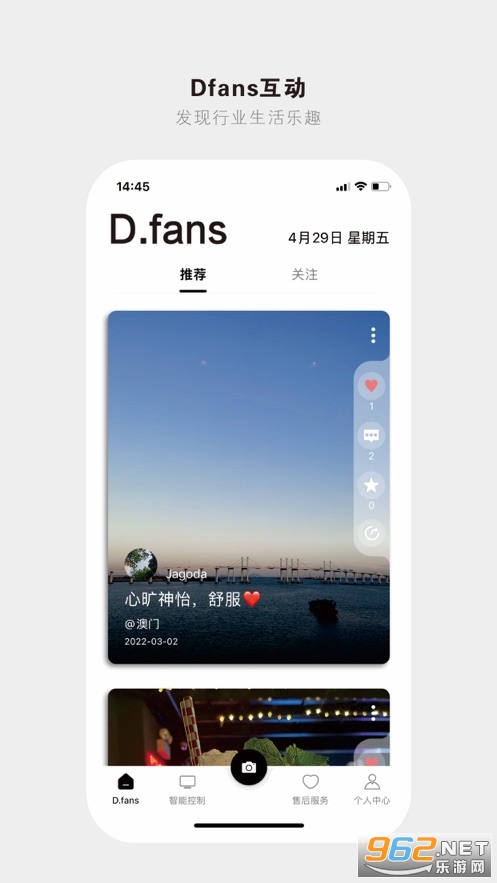 酒店的开放性和连通性,让这个圈子的从业者享受社交、乐于分享自己的审美与喜好。在APP的D.Fans模块中,用户不只是可以发布自己生活中的精彩瞬间,还可以关注喜欢的达人并与之互动,用最美的社交方式打造行业深度交流圈。