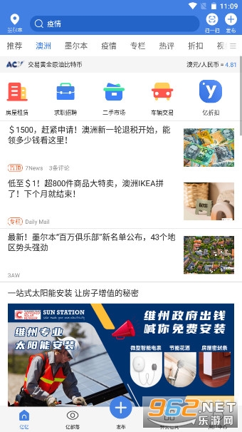 yeeyi亿忆网墨尔本手机版拥有丰富的本地交流信息,囊括同城生活、二手市场、婚恋交友、热门活动、留学移民、求职招聘、影视天地等多个分类版块,了解澳洲本地就从安装亿忆澳洲官方app手机亿忆开始!