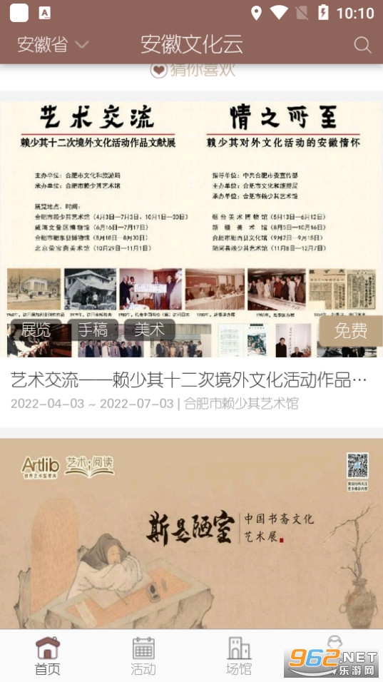 “首页推荐”将安徽省近期重大活动,包含展览、赛事、直播、新闻资讯、投稿征集等通过大屏海报轮翻展播,左右循环翻页,点击访问更便捷,精彩即点即达哦~