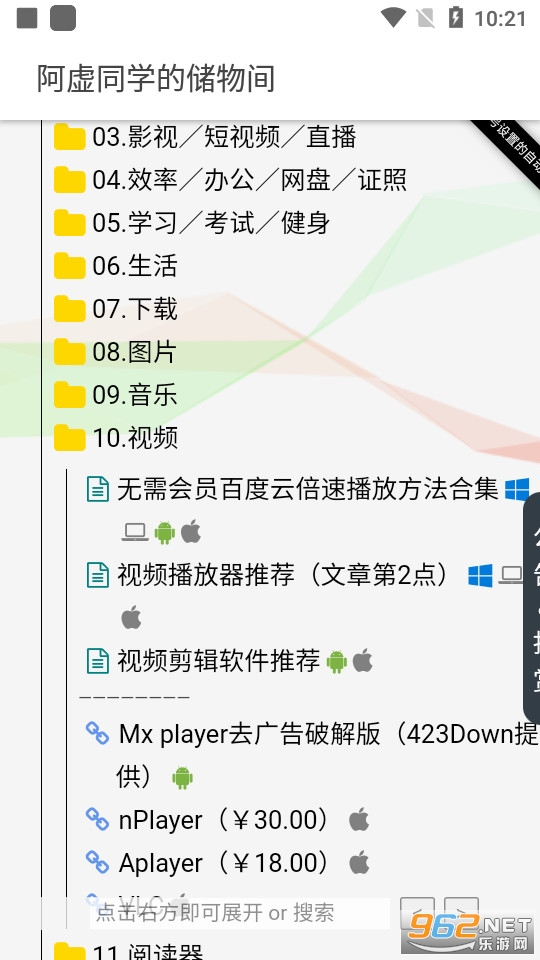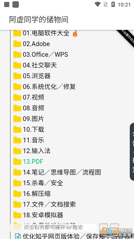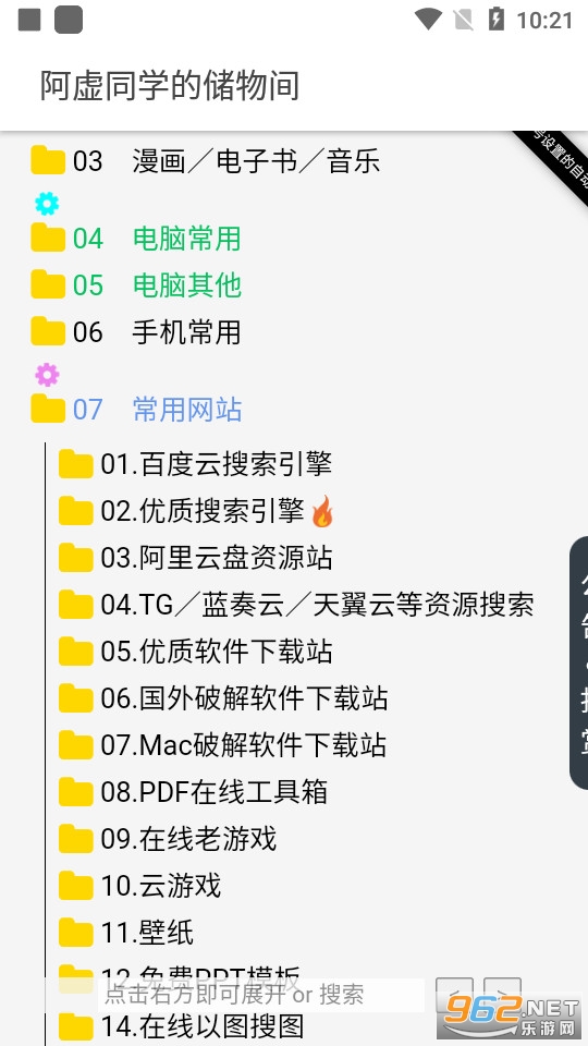 《阿虚同学的储物间》是一款非常实用的工具软件,为大家提供了各种实用的功能,比如对各种资源进行整合,各种内容应有尽有,用户能够直接查看各种常用的软件破解版以及学习考证的一些资料等等。免费就能够获取各种资源,有需求的话就快来下载吧!