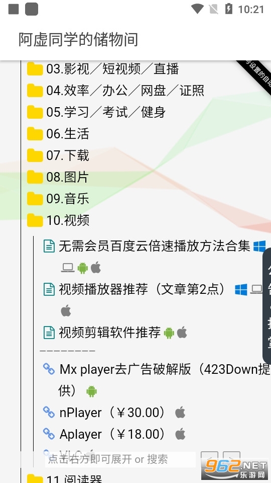 《阿虚同学的储物间app》是一款用起来非常不错的资源下载站软件,包括了各方面的,PC的以及手机上的各种工具以及你喜欢的影视作品等等,随意的下载即可,这个app其实就是用网页做的,如果不想要下载,小编会在文中附上最新的网页入口,感兴趣的亲们赶紧来看看吧。