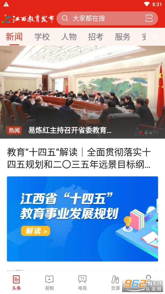 江西教育发布客户端设置了学校、人物、招考、服务本地等板块,为用户提供海量资源。