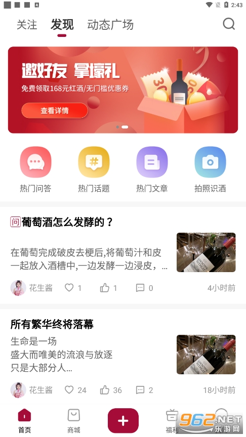 热门动态广场、分享发布生活瞬间,发现身边更多有趣的酒友!