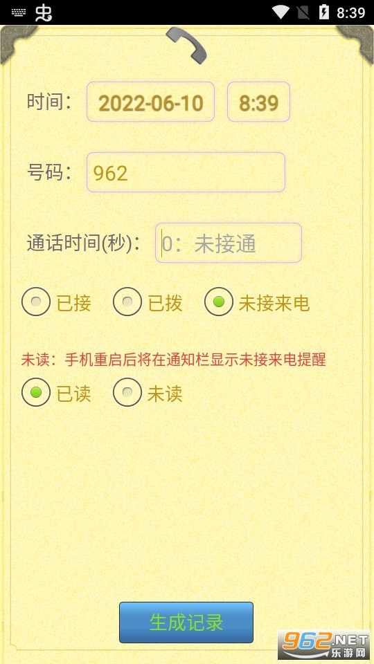 4.可以直接生成指定号码的通话记录