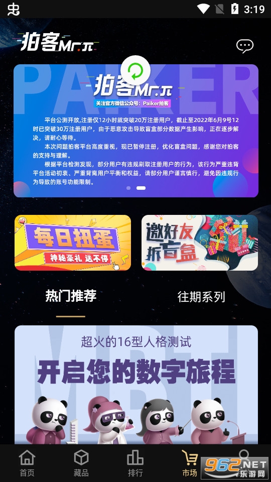 非常好用的数字藏品app,为大家提供了各种数字藏品,会不断的进行上新,艺术品种类丰富,并且还包括比较热门的16型人格数字藏品。