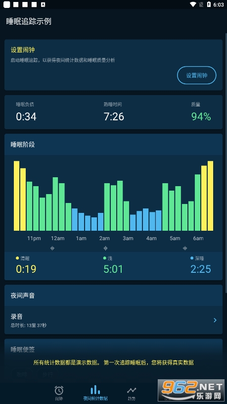 4、轻松的了解到你的睡眠的质量根据日常的习惯来进行调整;