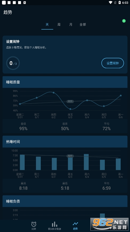 超级好用的一款睡眠追踪器,可以轻松帮助用户记录自己的睡眠状况,分析你的睡眠情况,还可以定闹钟,聆听睡前音乐等等,拥有丰富的功能帮助你获得更好的睡眠质量!