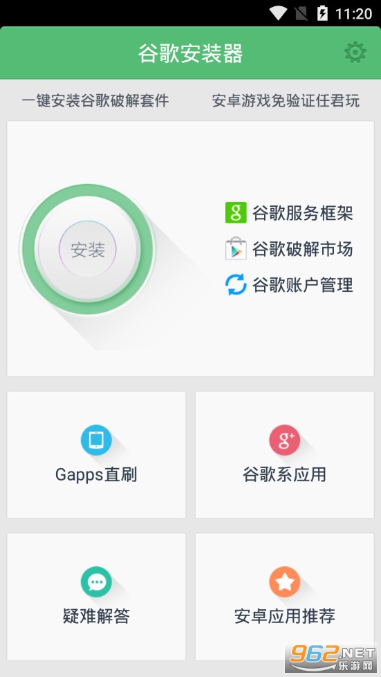 实用的谷歌安装器软件,可以一键安装谷歌服务框架,享用谷歌破解市场,可以下载各种谷歌应用和谷歌游戏,还有着幸运破解器、烧饼修改器等各种使用工具可以下载,有需要的朋友可以下载试试。