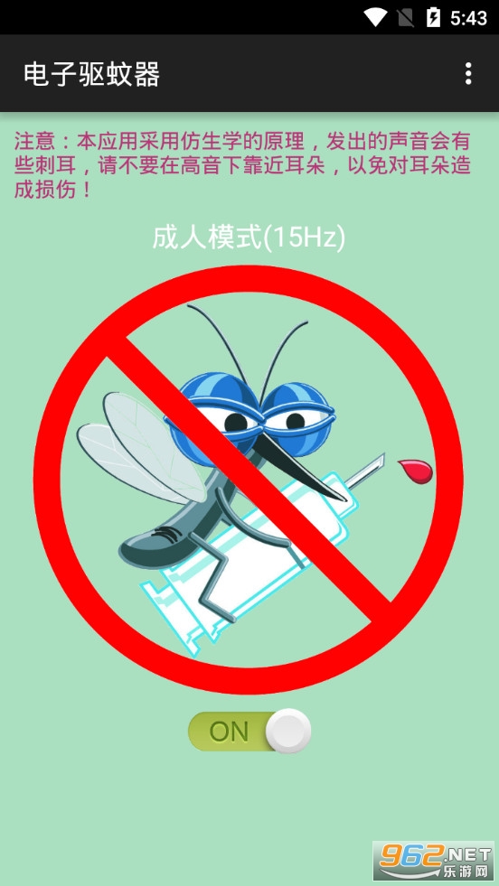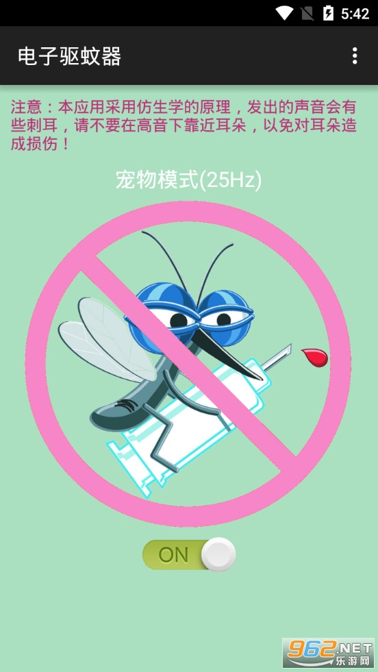 手机驱蚊软件,进入软件直接开启功能即可,注意声音有点刺耳,远离自己的耳朵,软件有着四种不同的模式可以选择,点击蚊子即可自由切换,有需要的朋友可以下载试试。
