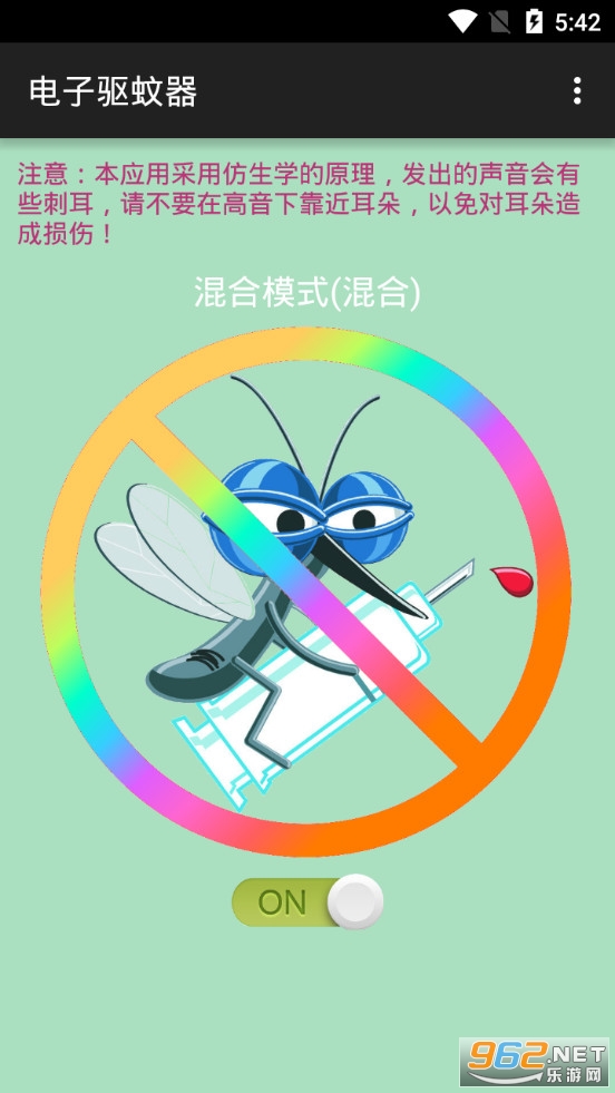 《电子驱蚊器app》是一款好用的手机驱蚊软件,夏天到了,很多朋友备受蚊子的煎熬,可以使用电子驱蚊器app来驱赶周围的文字,操作简单,进入软件点击下方的按钮来开启驱蚊功能,有着儿童模式、模式、宠物模式、混合模式四种模式可以选择。