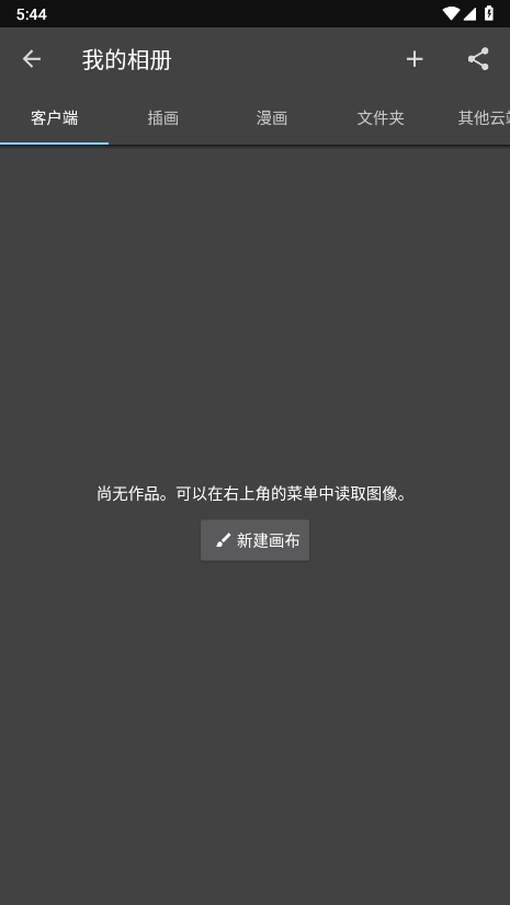 如图所示,一旦打开画布屏幕,您就可以完成绘画的准备工作。