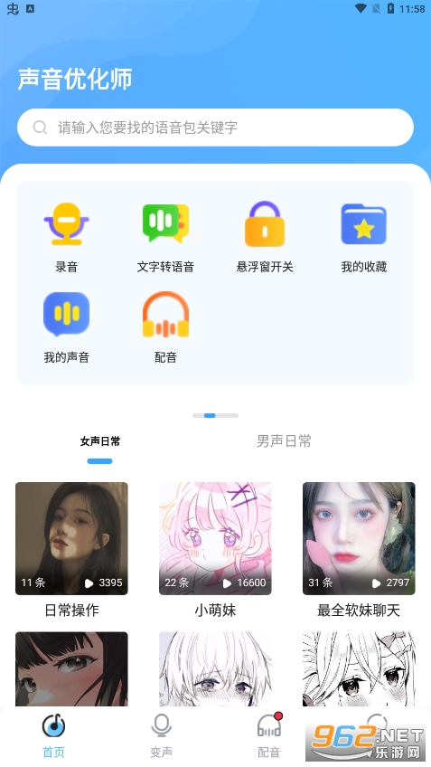 声音优化师APP内含精品语音包,超多丰富语音包,更有多种变声功能,适用于聊天、游戏、语音通话等场景!聊天交友游戏开黑专属。