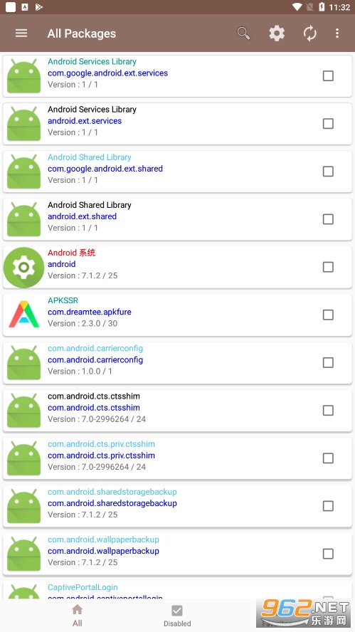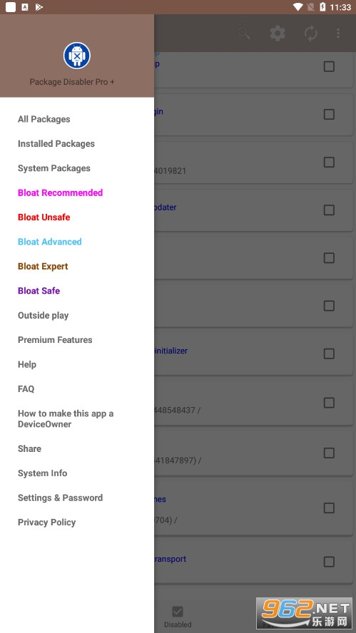 Package disabler Pro 应用, 是默认的操作模式显示应用程序和设备信息。
