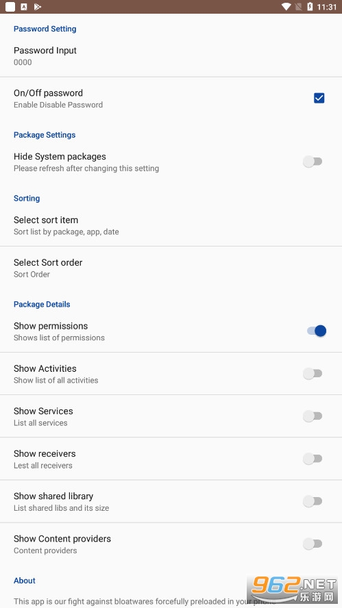 一款非常好用的权限管理软件,你可以快速管理各种预装软件和各个应用程序的权限,只需要单机你需要的包就可以进行禁用,禁用的程序不会进行更新和卸载,同时也无需root手机。推荐给有需要的用户。