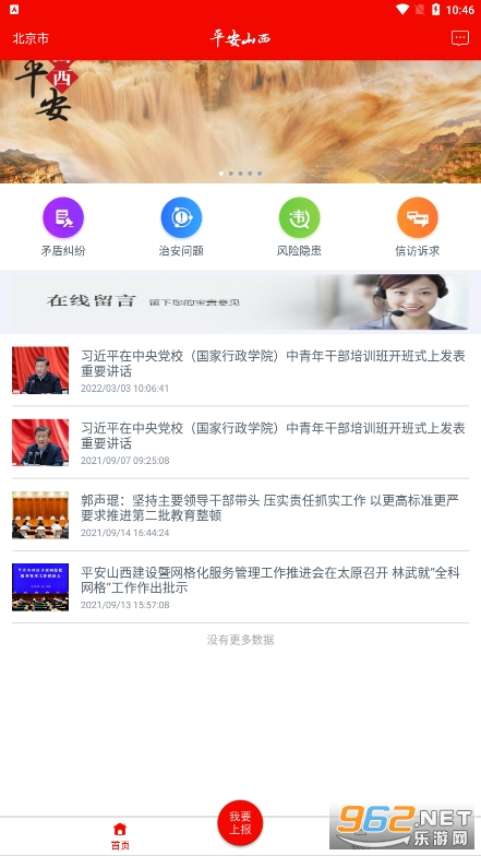 《平安山西》是一款全民监督交通违法互动平台,此版本为群众版,通过此平台广大的人民群众可以在线,上报矛盾纠纷,反馈本地的治安问题,风险樱花,可以直接打举报电话,十分方便,为普通民众提供了一个阳光,安全,顺畅的城市交通秩序监督互动平台,共建和谐文明的城市~