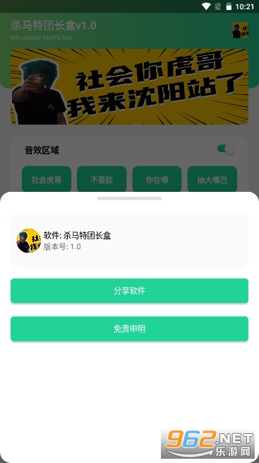 《杀马特团长盒1.0》你就是歌姬吧原声语音包软件下载方式提供大家,最近在各大网络社交平台上,以网红主播为核心的各种语音恶搞模拟软件非常受到各位网友们的喜欢,本次主人公“杀马特团长”,相信大家也并不会太陌生,这次你将与他一起去沈阳找虎哥单挑嗷。