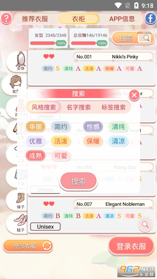 4.多种检索功能: 风格, 名字, 标签推荐的衣服不能保证一直有好的分数,仅供参考。