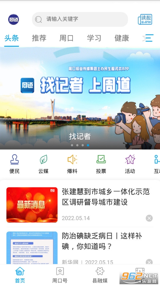 《周道app》是周口推出的一款民生服务平台,主要关注周口当地的社会民生,朋友们可以在周道app中去观看最新的新闻,了解周口最新的动态,有着学习、健康、文化、教育、旅游、美食等众多的栏目,可以前往便民栏目去享用各种便民服务,可以观看视频、直播等来了解周口。