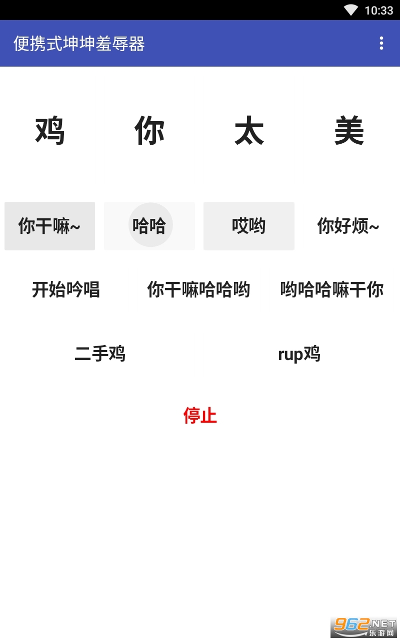 好玩的恶搞神器,里面包含了超多恶搞的内容,比如鸡你太美,你好烦,开始吟唱,你干嘛,哈哈等等,全新2.0版本修复众多的bug,更稳定,魔性十足,赶快来下载吧!