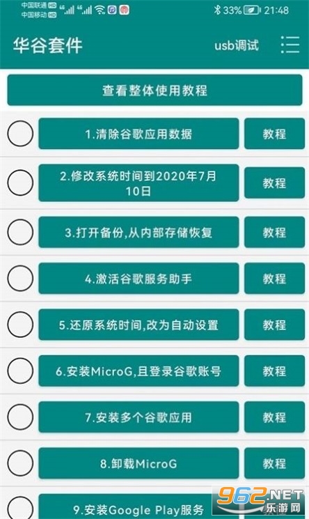 《华谷套件》是专门为华为和荣耀手机打造的一款可以直接通过一个安卓应用来解决设备未获得Play保护机制认证的烦人的弹通知的手机app,功能强大,里面拥有丰富的小工具,清晰的列表,让用户快速找到自己需要的功能,解决google服务一系列的问题!