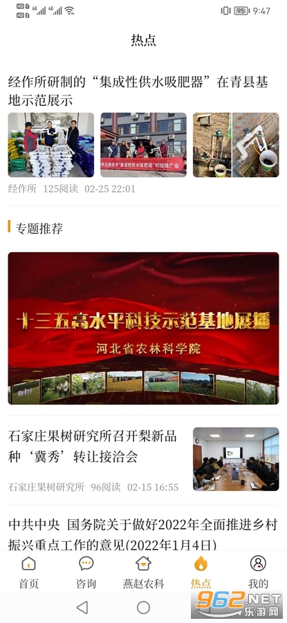 “燕赵农科”是河北省农科院打造的服务“三农”的“线上农业学校”,也是促进科技成果快速转化,提高科技传播效率和农业从业者科技素质,服务全省农业高质量发展的重要手段之一。平台设有农科讲堂、成果展厅、专家服务、科普知识、法律法规等12个信息板块,主要发布河北省农科院最新技术成果和科技服务动态,以及现代农业技术、农业政策法规、农业科普知识等农业资讯,同时可以开展线上农业科技咨询与服务。