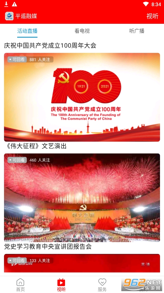 3、党建服务、政务服务随时体验,能够在线看电视、听广播