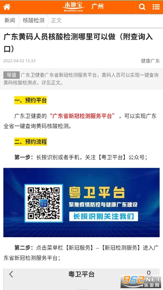 查看当地黄码人员核酸检测要求