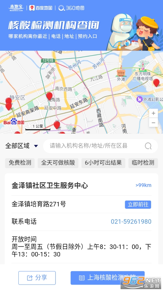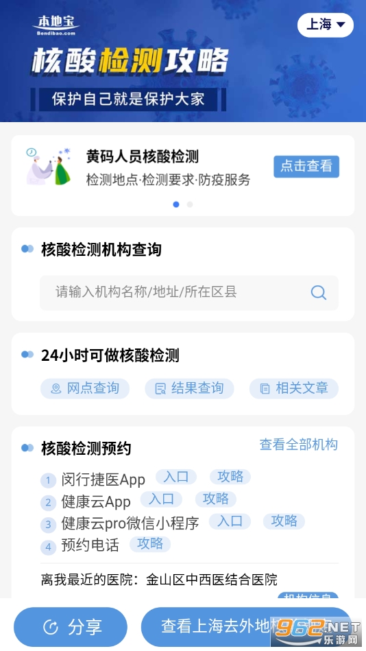 《上海核酸检测点查询》是一款可以帮助用户快速查询附近核酸点的平台,其实就是本地宝中的一个功能,用户可以通过此平台输入机构名称,地址或者所在区县查询核酸检测机构,24小时可做核酸网点,离你最近的医院,机构信息,还可以在线预约核酸检测,查询核酸结果,了解核酸检测最新的消息,政策以及注意事项,为大家提供了非常多的便利!