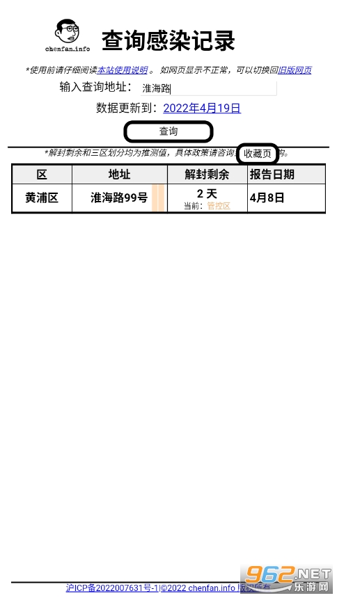 能够让大家快速查询上海某个街道,某个小区感染记录的手机工具,直接输入地址,点击查询,就可以查到该地区小区的感染记录,感人人数,是封控区,管控区还是防范区,超级方便!