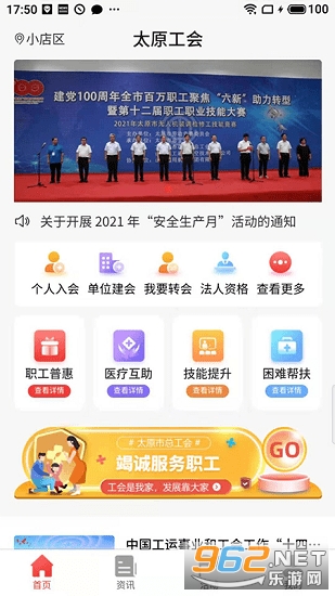 太原市总工会app是太原市总工会推出的移动服务端,以用心为太原市职工为导向,为职工提供问题活动、教育培训、普惠服务、法律咨询、帮扶救助、新闻阅读、婚恋交友等实实在在的服务项目,为太原职工群众打造良好的网上职工之家,享受“指尖工会”的方便、快捷、高效的服务。