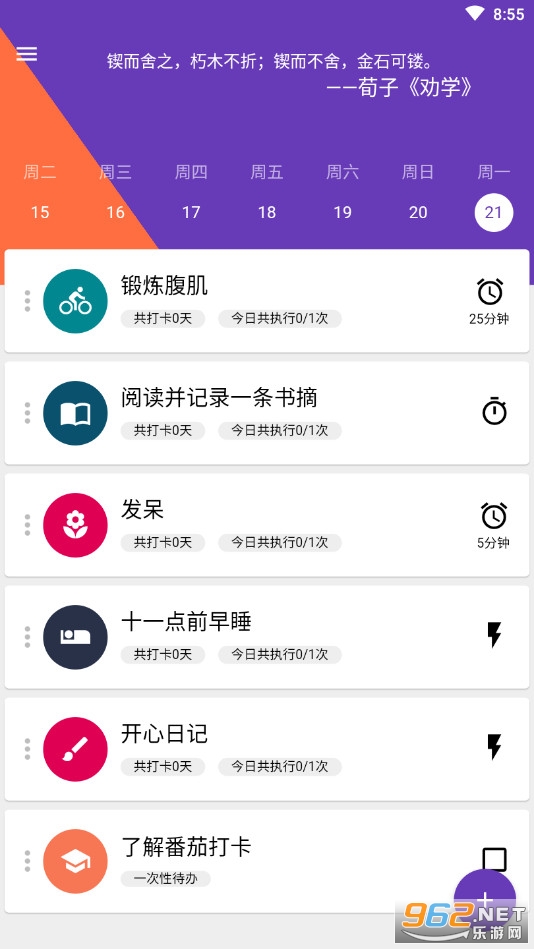 《番茄打卡》是一款非常实用的打卡软件,各种各样的软件都通过打开来培养用户的登录习惯,而且有许多人都可以坚持非常久。那么通过打开让自己养成一些好习惯就非常值得警醒尝试,软件的操作简单容易上手,还有着丰富有趣的功能,赶快下载体验吧!