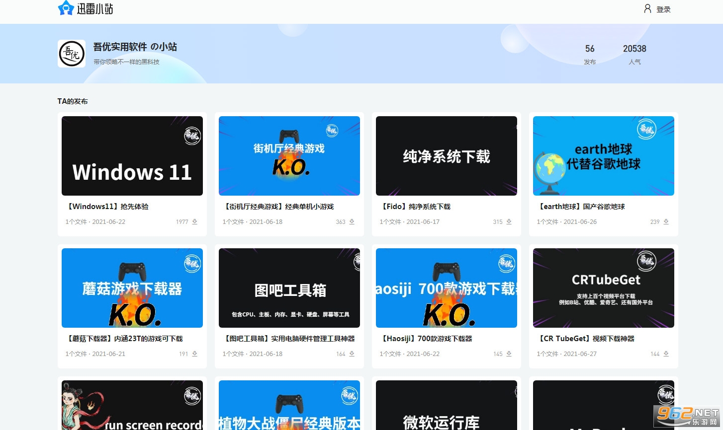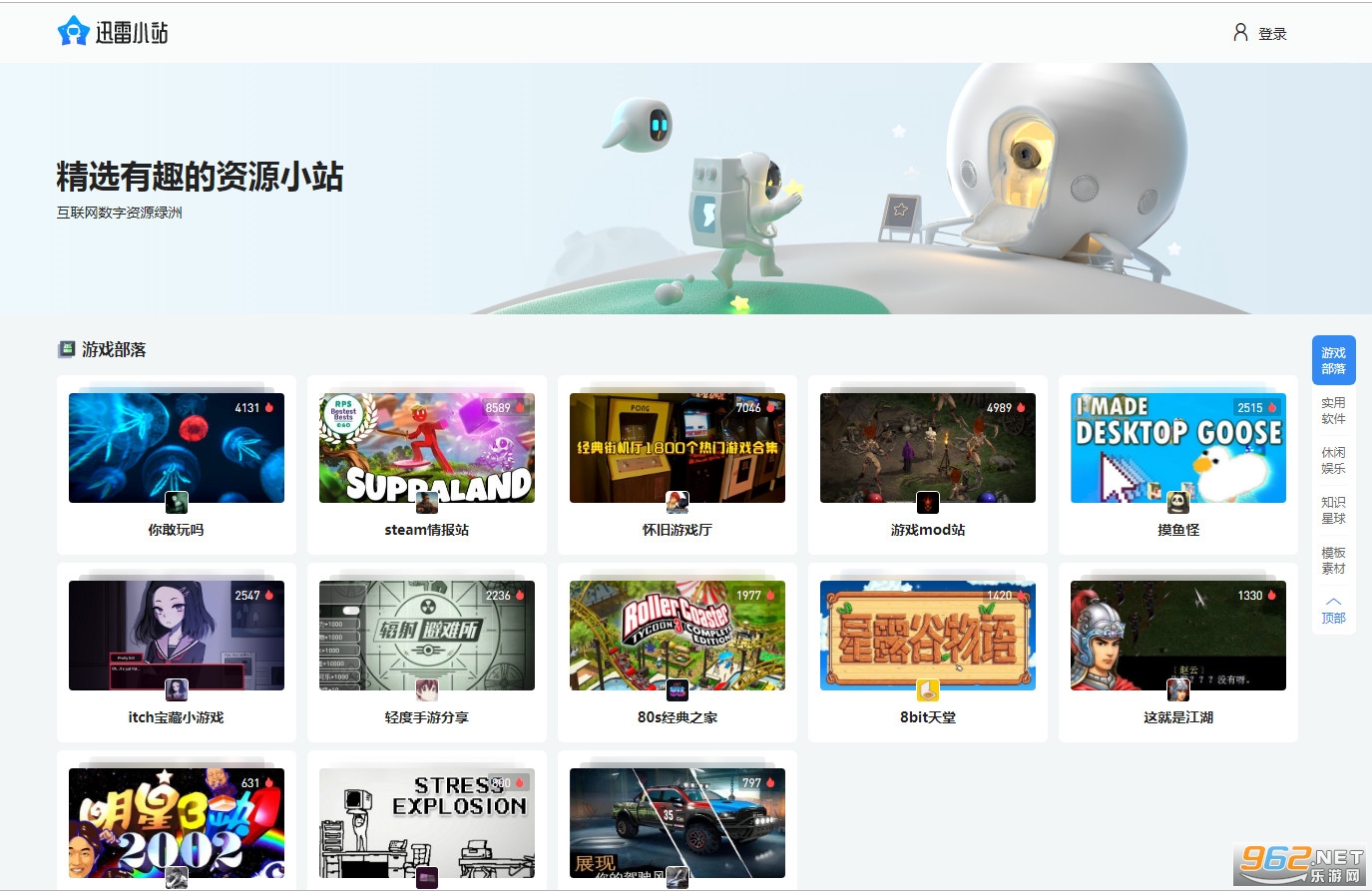 2、迅雷小站定位“精选有趣的资源”,目前分为四个板块:游戏部落、实用软件、知识星球、模板素材;