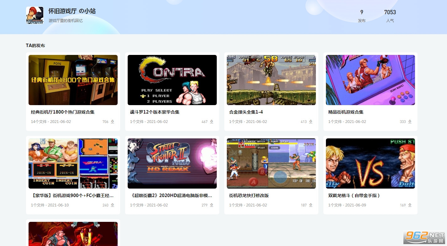 3、以“游戏部落”为例,这里可以下载到《经典街机厅1800个热门游戏合集》
