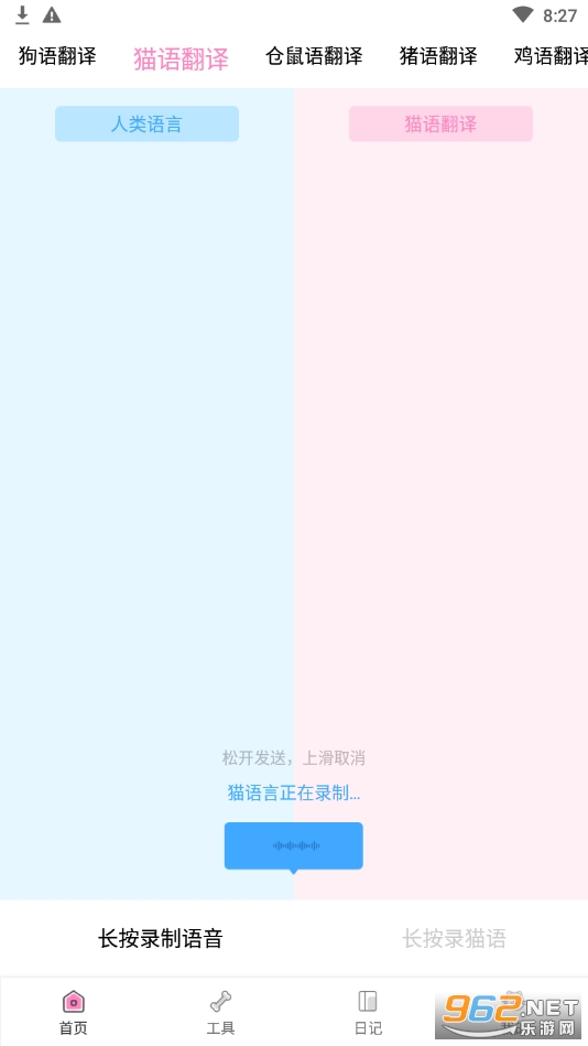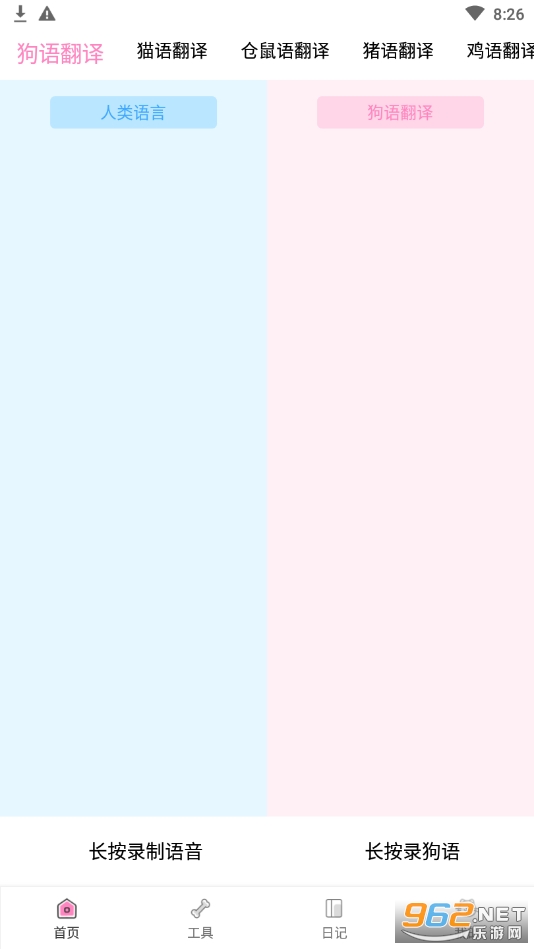 专为大家打造的一款动物语言翻译工具,支持不同国家的语音,不同动物叫声的翻译,让你快速了解动物叫声的含义,和宠物进行有效的交流!