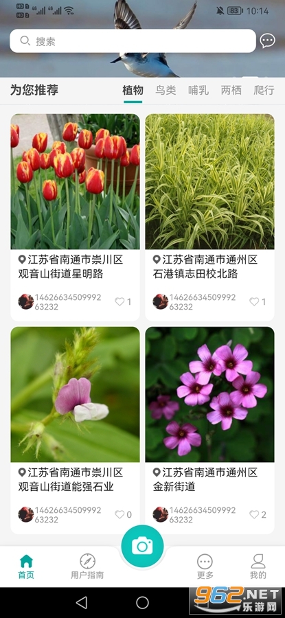 适合南通的朋友们使用的生物识别软件,植物、鸟类、哺乳类、两栖类、爬行类等各种生物都可以直接拍照查询,也可以进行人工识别,可以了解到南通多样性的生物,有需要的朋友可以下载试试。